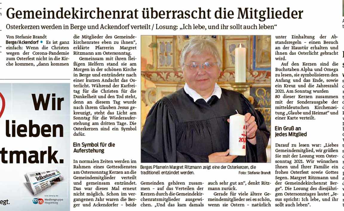 Wir wertschätzen das engagierte Wirken der Evangelischen Kirchengemeinde Berge, meistern Sie doch in diesen ungewöhnlichen Zeiten auch besondere Herausforderungen bei der Gemeindearbeit.“