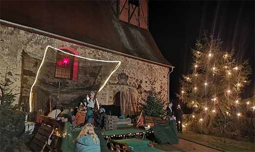 Wir freuen uns, Sie am Heiligabend um 17:15 Uhr vor unserer Dorfkirche zu einem Kurzgottesdienst begrüßen zu dürfen.