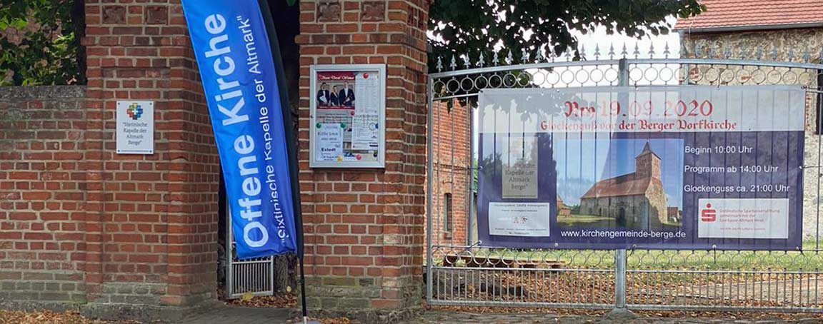 Am 22.09.2020 wurden das erste Mal, im Plenum alle drei Glocken um 18.00 Uhr geläutet. Nach 107 Jahren verfügt die Berger Dorfkirche wieder über ein Geläut mit 3 Glocken.